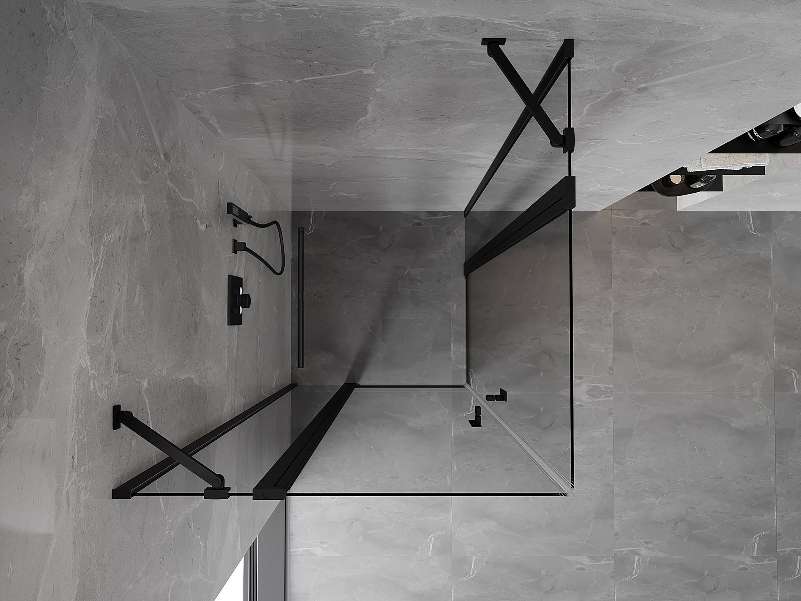 Mexen Mist Duo oppebar Duschkabinn 90 x 90 cm, transparent, schwaarz - 8A4-090-090-70-00