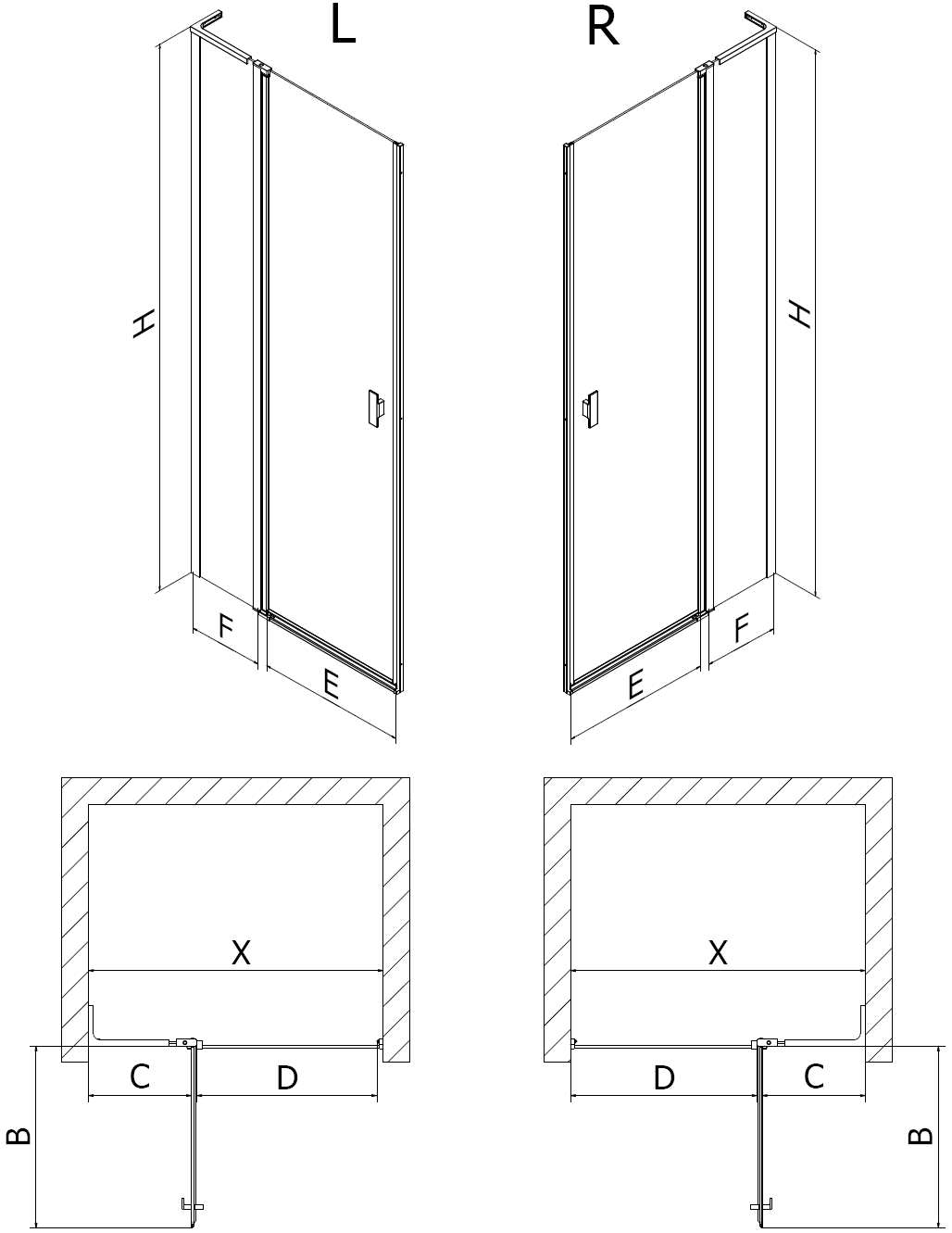 Mexen Mist L riichter Duschdier 95 cm, schwaarze Rumm, schwaarz - 8A4L-095-000-70-70-P