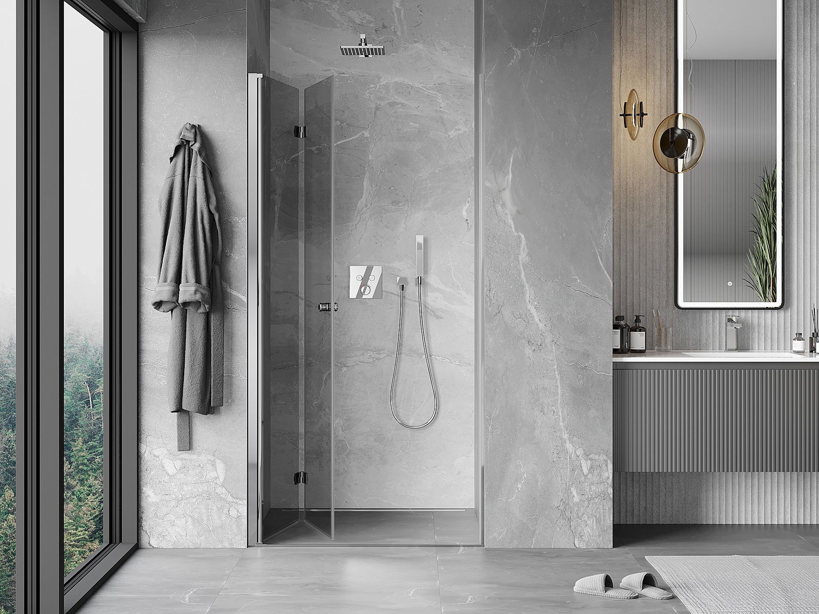 D'Méiglechkeet d'Dieren souwuel no baussen wéi no bannen ze klappen, erlaabt et méi Raum ze kréien wann de Buedzëmmer net benotzt gëtt. Dëst ass eng ideal Léisung fir méi kleng Buedzëmmeren, déi d'fläche maximal notzen.