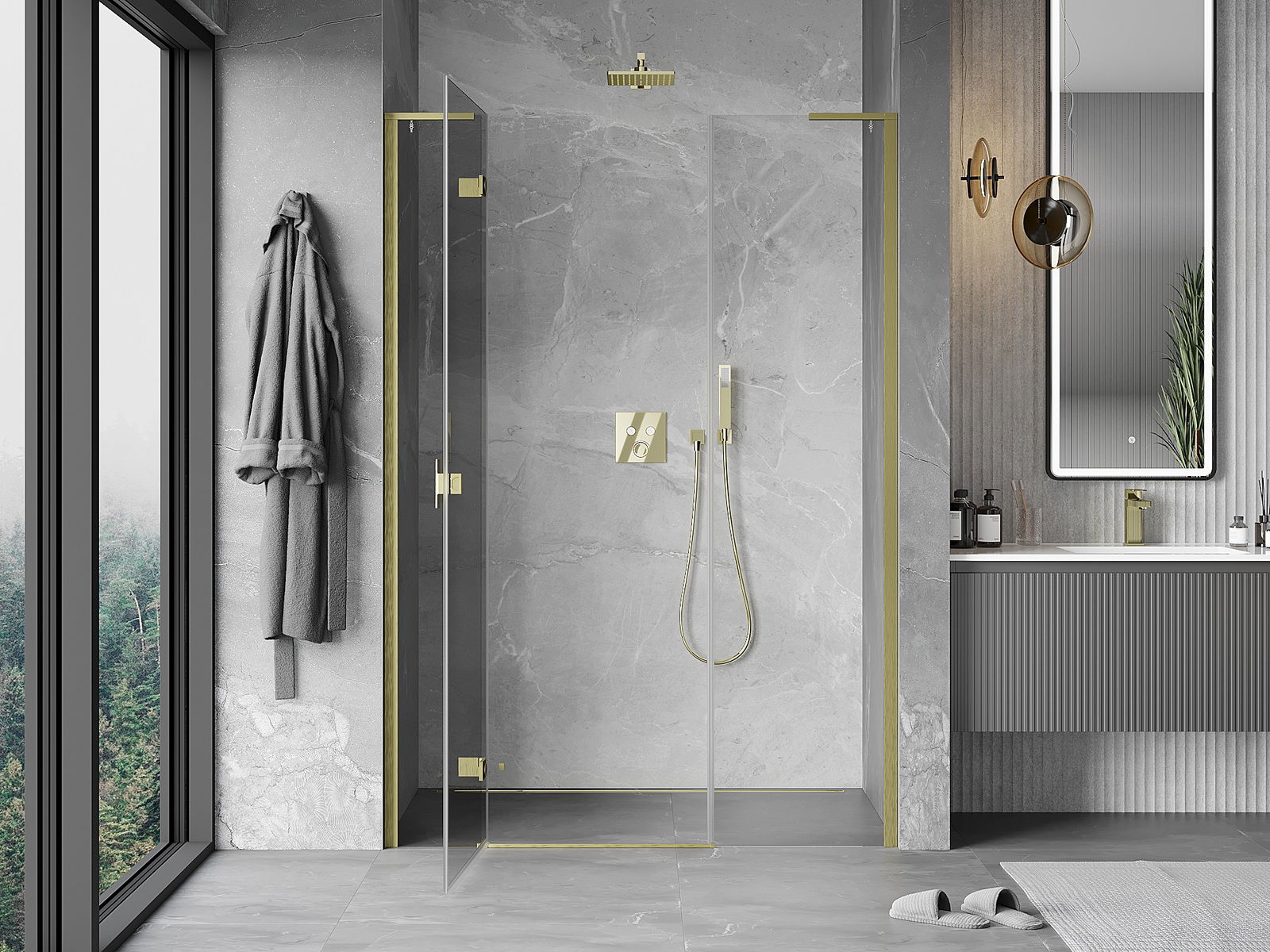 En handlesch a bequeeme Grëff ass aus haltbarem an zähe Metalls gemaach. De moderne Form a Kombinatioun mat enger Ofschloss, déi op d'Faarf vun de Profiler ofgestëmmt ass, gëtt dem Ganzen en modernen a stilvollen Erscheinungsbild an ënnersträicht d'Esthetik vun all Buedzëmmer.