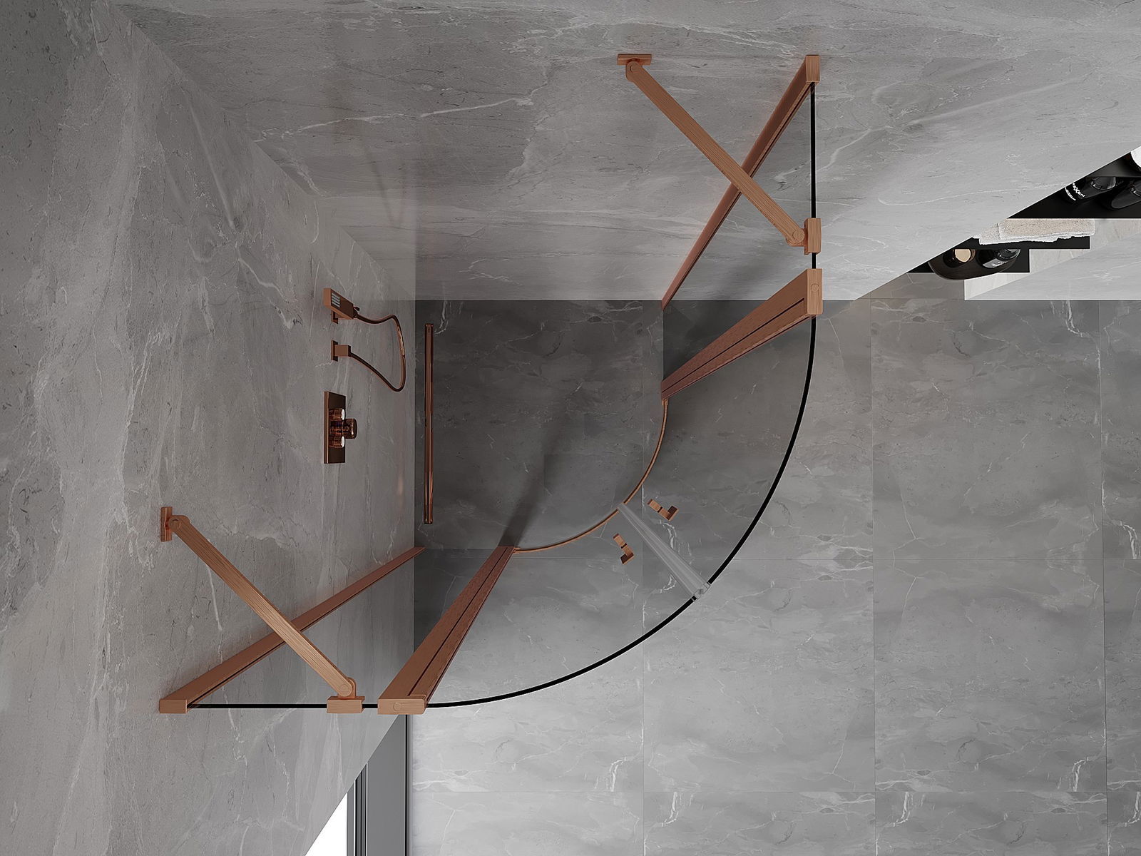 Mexen Mist halbkreesfërmeg Duschkabinn mat Schwenkdier 80 x 80 cm, transparent, gebierste Kopper - 8A32-080-080-65-00