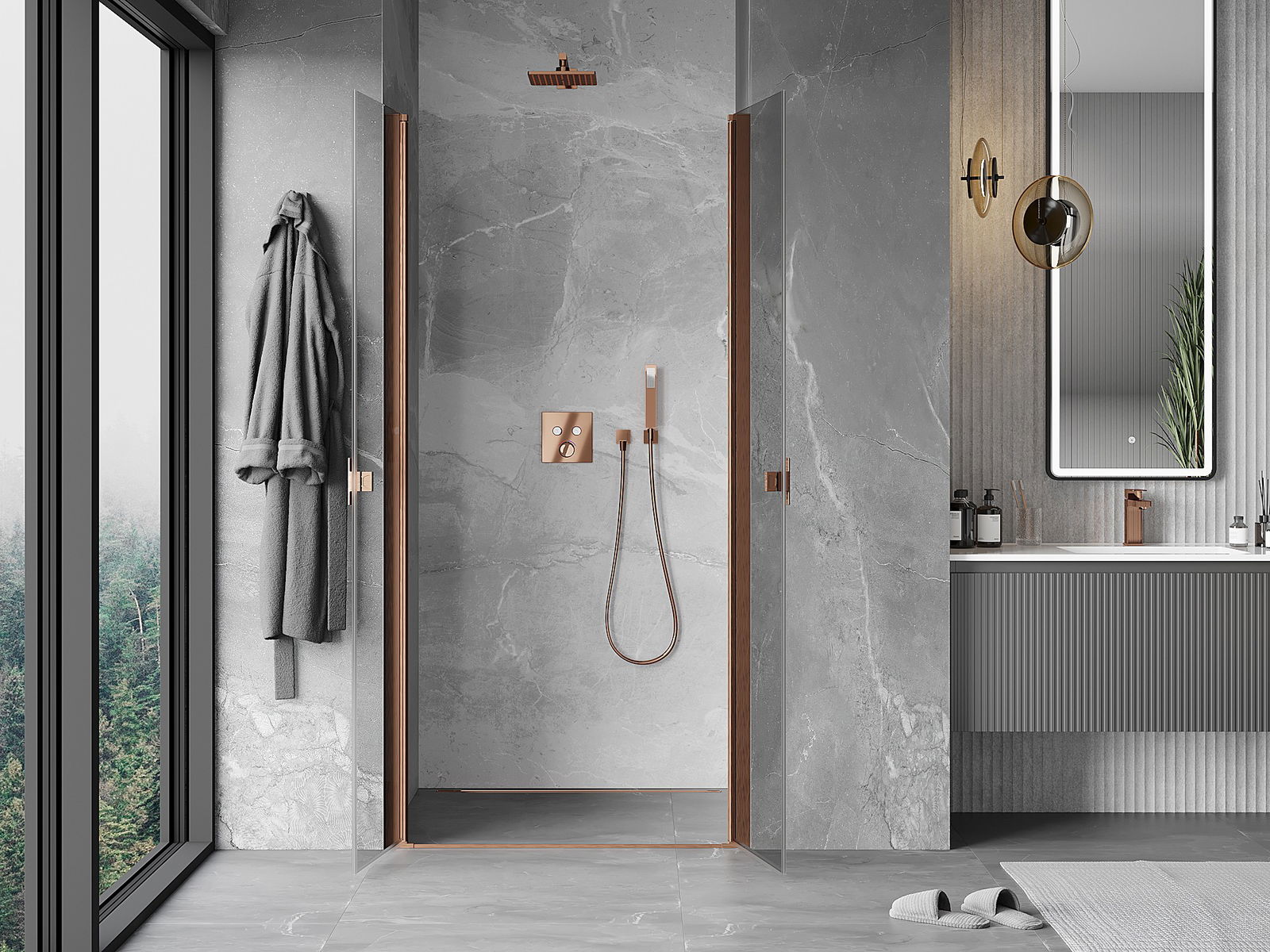 En handlesch a bequeeme Grëff ass aus haltbarem an zähe Metalls gemaach. De moderne Form a Kombinatioun mat enger Ofschloss, déi op d'Faarf vun de Profiler ofgestëmmt ass, gëtt dem Ganzen en modernen a stilvollen Erscheinungsbild an ënnersträicht d'Esthetik vun all Buedzëmmer.