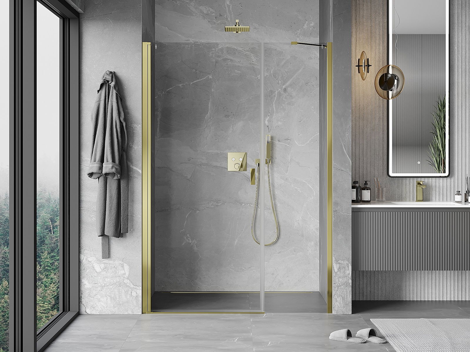 En handlesch a bequeeme Grëff ass aus haltbarem an zähe Metalls gemaach. De moderne Form a Kombinatioun mat enger Ofschloss, déi op d'Faarf vun de Profiler ofgestëmmt ass, gëtt dem Ganzen en modernen a stilvollen Erscheinungsbild an ënnersträicht d'Esthetik vun all Buedzëmmer.
