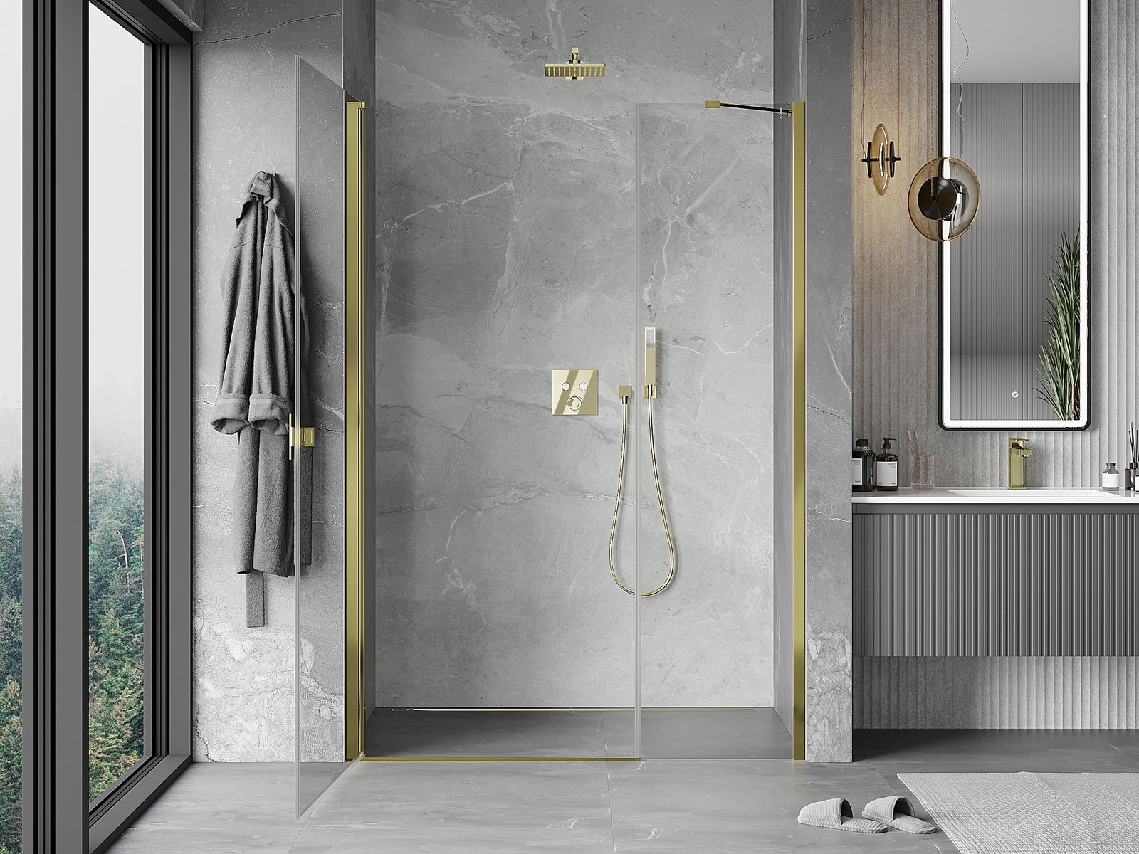 En handlesch a bequeeme Grëff ass aus haltbarem an zähe Metalls gemaach. De moderne Form a Kombinatioun mat enger Ofschloss, déi op d'Faarf vun de Profiler ofgestëmmt ass, gëtt dem Ganzen en modernen a stilvollen Erscheinungsbild an ënnersträicht d'Esthetik vun all Buedzëmmer.