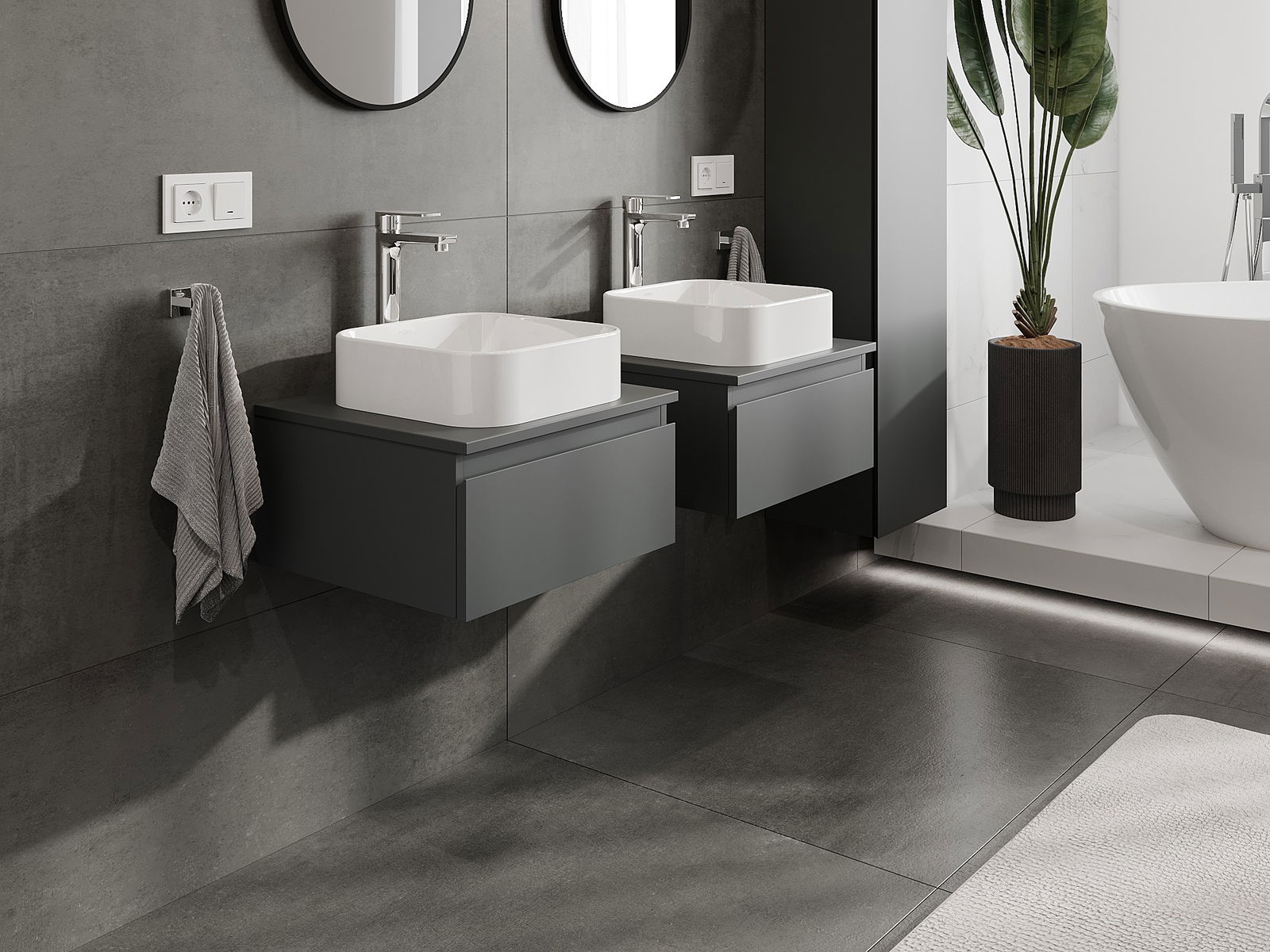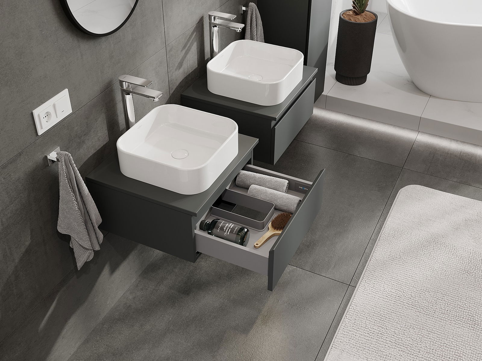 Dank de robuste Materialien, der preziser Ausféierung an den modernen technologesche Léisungen, bitt de Produit Komfort beim Gebrauch, Widderstandsfäegkeet géint Fiichtegkeet a Temperaturännerungen, wéi och en elegante Look, deen zu verschiddene Buedzëmmerstiler passt.