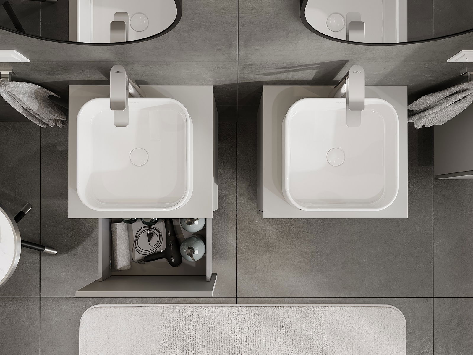De Cabinetkierper gëtt komplett zesummegebaut geliwwert, wat maximalen Komfort a Zäitspuer bedeit. Du muss keng Stonnen domat verbréngen de Miwwel zesummenzebauen – einfach an der gewielter Plaz am Buedzëmmer montéieren. Et ass déi ideal Léisung fir Leit, déi séier Montage an en direkten Effekt schätzen.