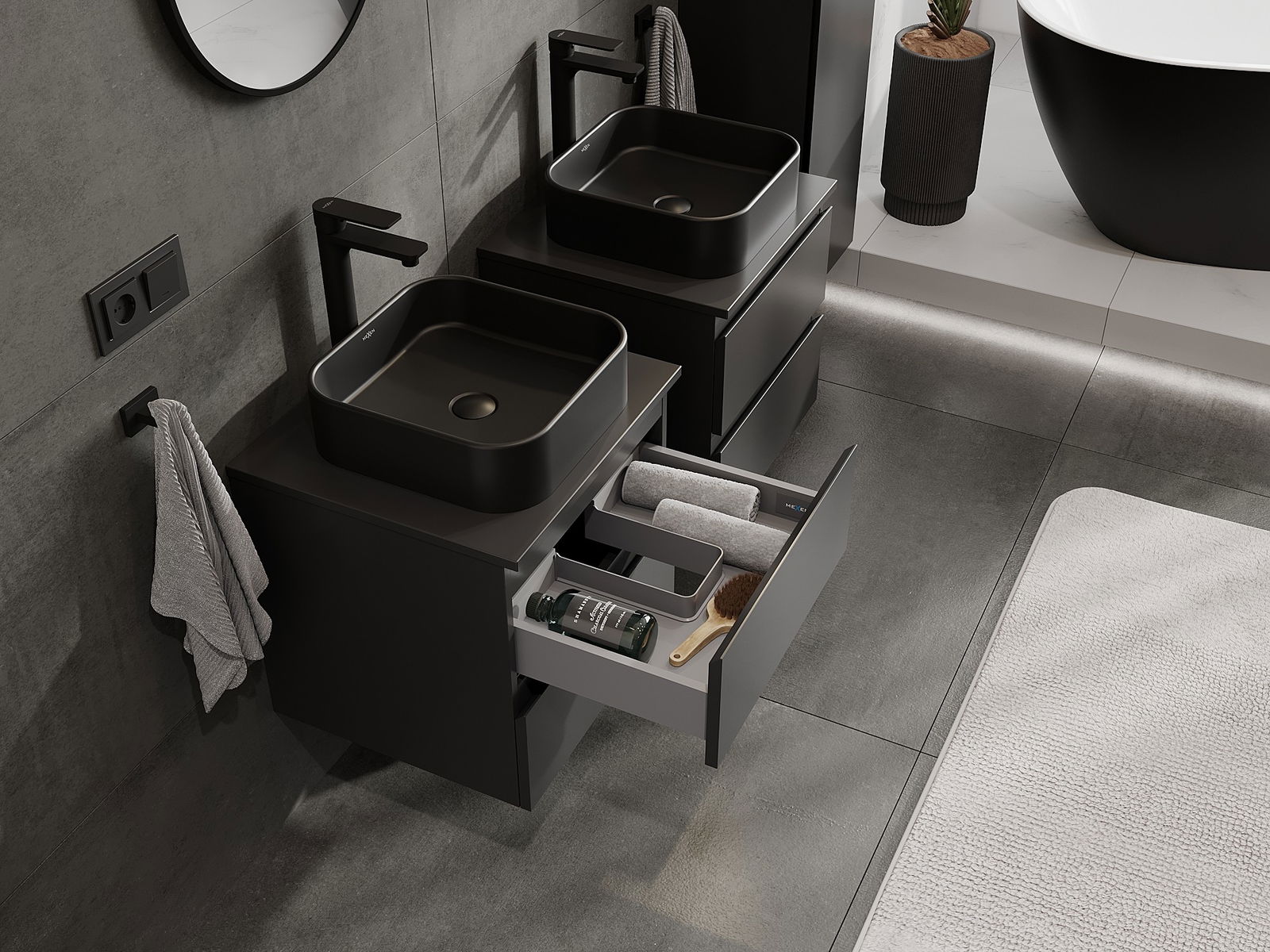 De Cabinetkierper gëtt komplett zesummegebaut geliwwert, wat maximalen Komfort a Zäitspuer bedeit. Du muss keng Stonnen domat verbréngen de Miwwel zesummenzebauen – einfach an der gewielter Plaz am Buedzëmmer montéieren. Et ass déi ideal Léisung fir Leit, déi séier Montage an en direkten Effekt schätzen.