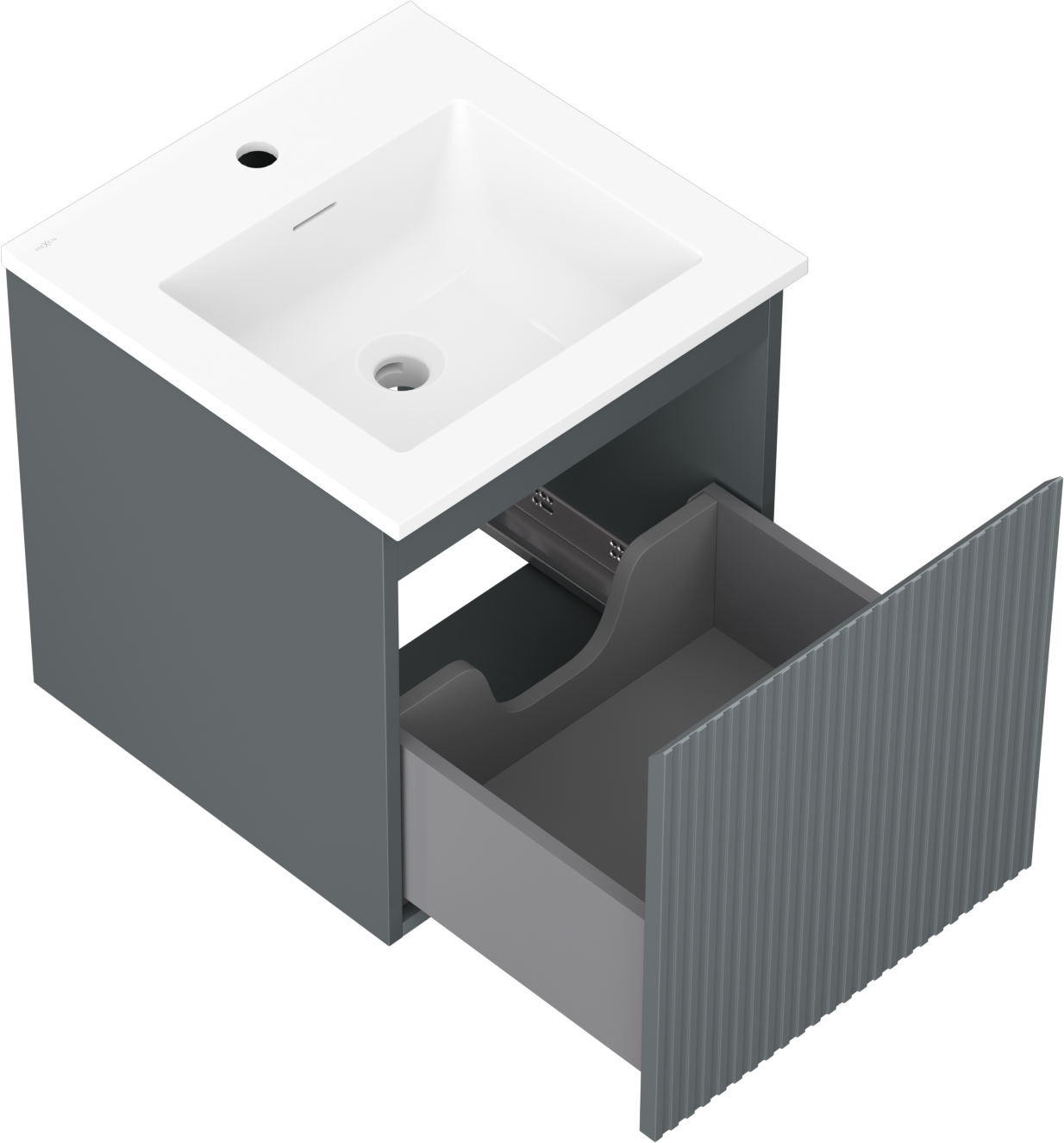 Mexen Rivel Buedzëmmer Schaf 45 cm mat ëmwäsch Otis, 1 Schublaad, geribbelt, graphite mat/wäiss mat