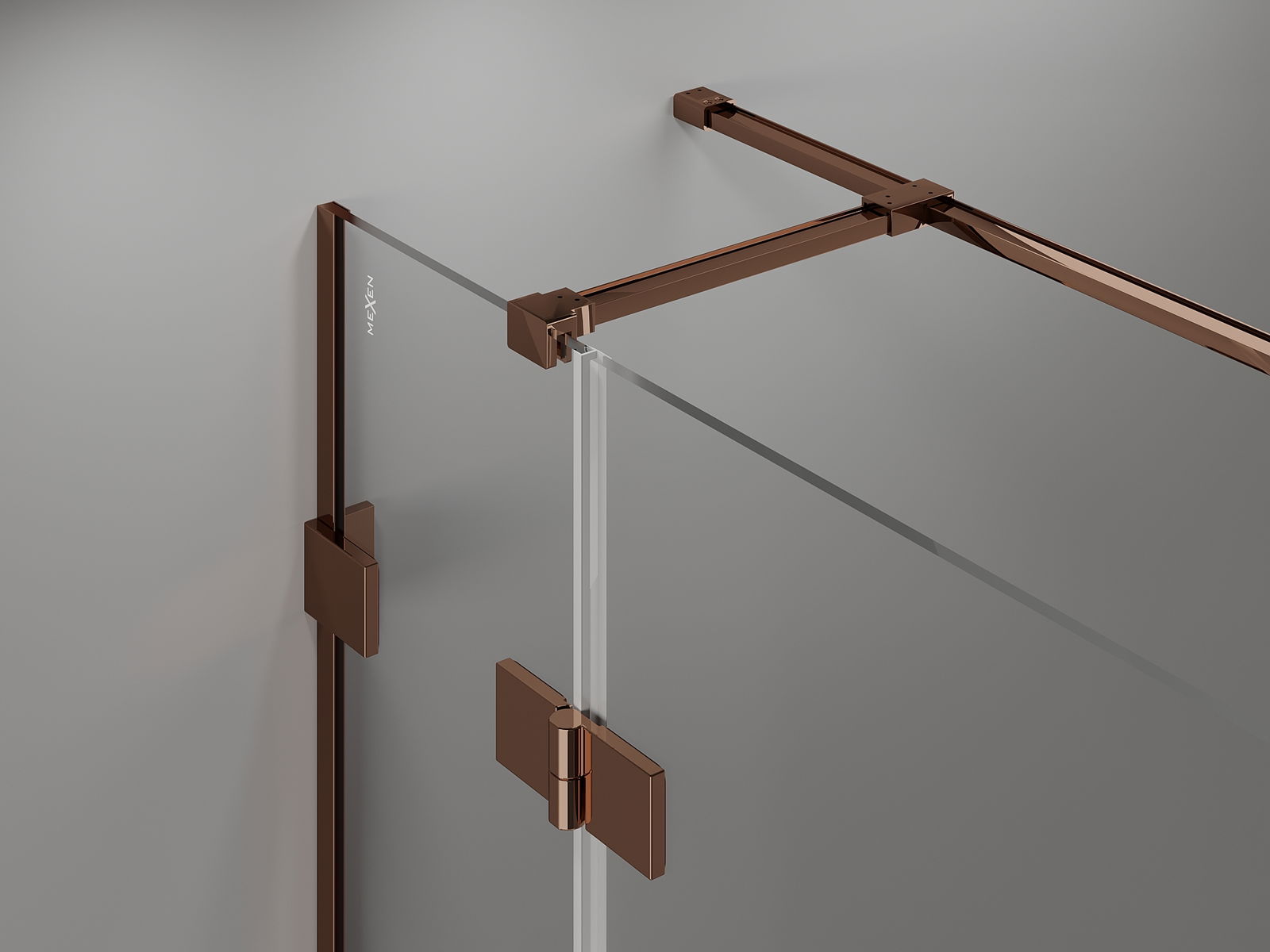 D'Klammen an d'Héngelen goufen aus ganz dauerhafte Messing gemaach, an zousätzlech schafen se eng ausgeglachen Glasfläche. Et ass eng exzellent Wiel, déi Eleganz, Haltbarkeet an modernen Design verbënnt. Mat esou Léisunge gewënnt d'Dusch un Ästhetik, an gläichzäiteg erliichtert et d'Rengen.