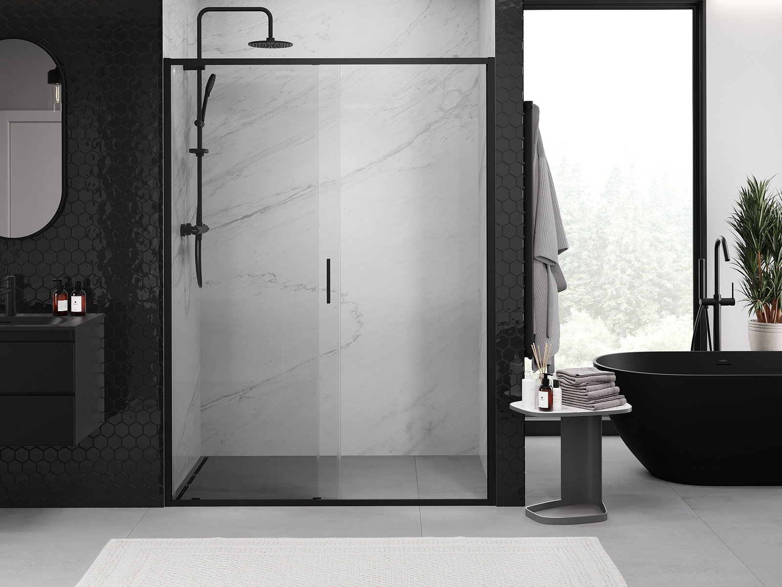 Dank dem universelle Montagesystem kënnen d'Duschdieren op der lénker oder op der rietser Säit montéiert ginn, ofhängeg vun de Besoinen. Duerch dëst kënns du de Buedzëmmer-Dusch mat Liichtegkeet un de Raum upassen.