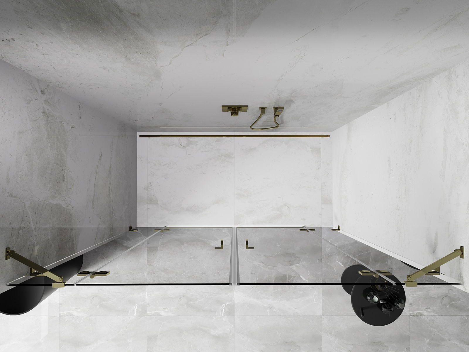 D'Klammen an d'Héngelen goufen aus ganz dauerhafte Messing gemaach, an zousätzlech schafen se eng ausgeglachen Glasfläche. Et ass eng exzellent Wiel, déi Eleganz, Haltbarkeet an modernen Design verbënnt. Mat esou Léisunge gewënnt d'Dusch un Ästhetik, an gläichzäiteg erliichtert et d'Rengen.