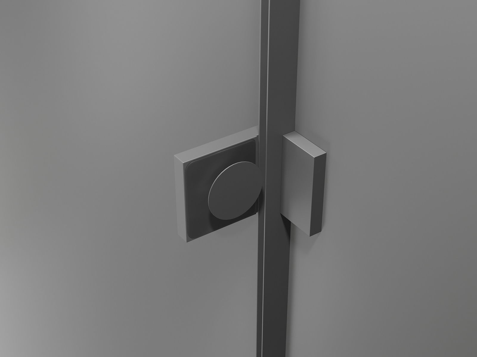 En handlesch a bequeeme Grëff ass aus haltbarem an zähe Metalls gemaach. De moderne Form a Kombinatioun mat enger Ofschloss, déi op d'Faarf vun de Profiler ofgestëmmt ass, gëtt dem Ganzen en modernen a stilvollen Erscheinungsbild an ënnersträicht d'Esthetik vun all Buedzëmmer.