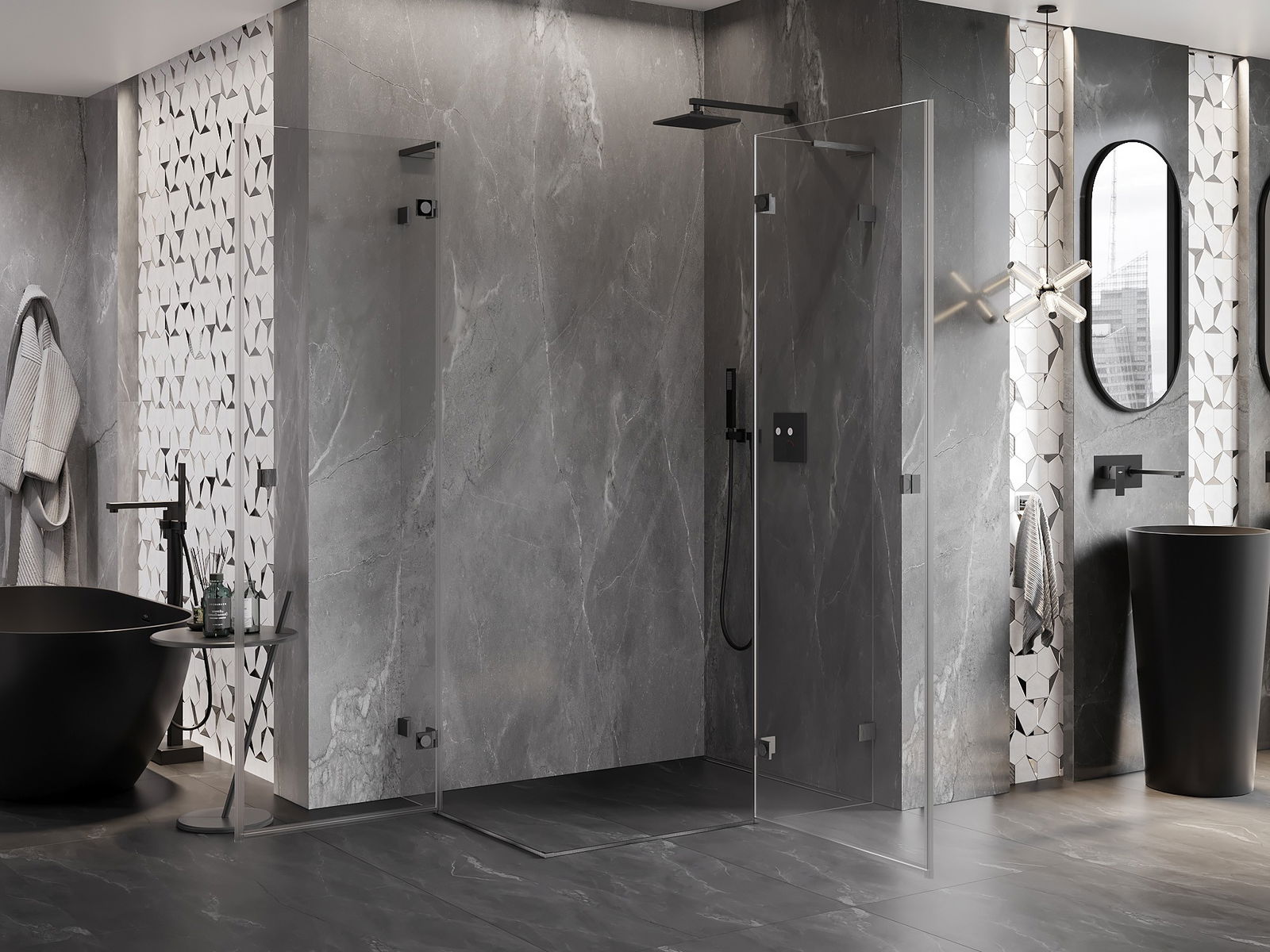 D'Klammen an d'Héngelen goufen aus ganz dauerhafte Messing gemaach, an zousätzlech schafen se eng ausgeglachen Glasfläche. Et ass eng exzellent Wiel, déi Eleganz, Haltbarkeet an modernen Design verbënnt. Mat esou Léisunge gewënnt d'Dusch un Ästhetik, an gläichzäiteg erliichtert et d'Rengen.
