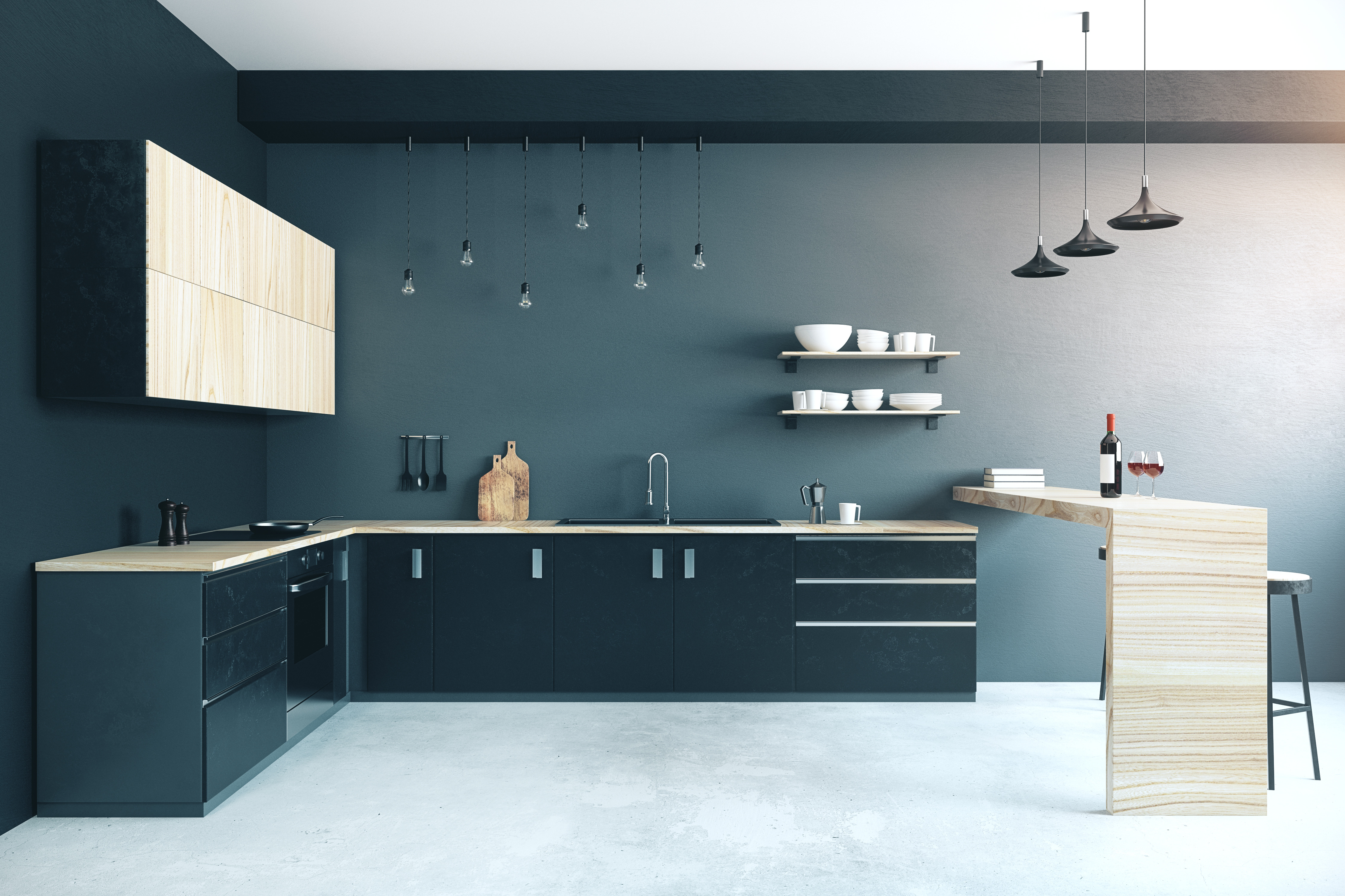 Architektonesche Beton an der Kichen ass eng relativ nei Léisung, déi awer ganz beléift ass, besonnesch ënner de Liebhaber vum rauen Stil inspiréiert vun Loft-interieuren. Modern technologesch Léisunge erméiglechen d'Dekoratioun vun enger Kichen souwuel duerch d'Benotzung vu richtegen Betondeuwen wéi och Indem op d'Mauer modern Plättercher installéiert ginn, déi de Beton imitéieren. Béid Léisungen si gläich stilvoll, d'Imitatioun vum Beton ass awer e bëssen méi einfach an der Veraarbechtung. Wéi eng anerer Virdeeler kann de Beton op der Mauer bidden?